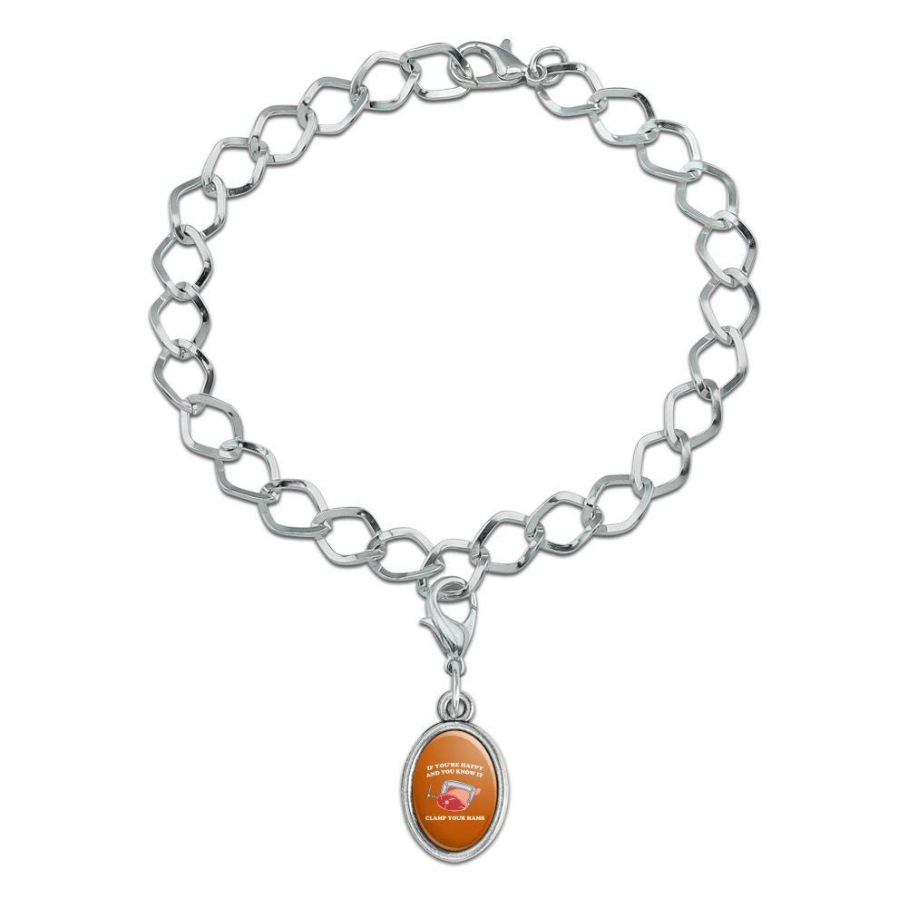 HomeClothing, Shoes & JewelryWomenJewelryBraceletsCharms & Charm BraceletsCharmsClaspGRAPHICS & MORE If Youre Happy and You Know It Clamp Your Hams Clap Hands Funny Humor Silver Plated Bracelet with Antiqued Oval Charm